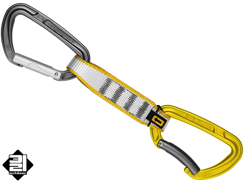 - horní rovná karabina s Keylockem a speciálně tvarovanými drážkami na zámku pro snadné cvakání nýtů