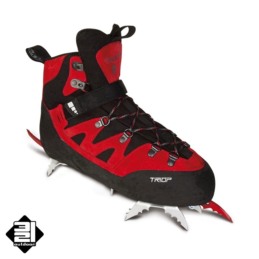 Jedinečná kombinace lezecké obuvi a stoupacích želez pro extrémní mixové a ledové lezení, dry-tooling a závodní lezení. Svršek z hovězinové štípenky v kombinaci s Cordurou poskytuje dostatečnou pevnost a maximální flexibilitu, potřebnou pro tento druh lezení. Vnitřní hydrofilní podšívka Drylex společně s tepelně-izolační vrstvou dává dokonalý pocit při obutí a poskytuje optimální obepnutí nártu a kotníku. Pro zvýšení zajištění nohy lezce je samotné šněrování ještě pojištěno u kotníku páskem s Velcro uzavíráním. Pro obsázku a patu je použita osvědčená směs pro lezeckou obuv, čímž poskytuje kvalitní ochranu samotnému svršku a navíc umožňuje i případnou podporu při samotném lezení. Stoupací železa, vyrobená z kvalitní Cr-Mo oceli, jsou permanentně přišroubována k podrážce lezeckých bot, což dává pocit kompaktní jednolitosti. Přední monohrot nabízí absolutní svobodu v pohybu do stran, patní hrot (ostruha) pomáhá odlehčit váhu lezce v obtížných převisech. Přední hrot je umístěn asymetricky - blíže na stranu palce a patní hrot může být odejmut pro rychlostní lezení z důvodu větší bezpečnosti. Oba hroty jsou libovolně nastavitelné a pro snadnější přepravu a skladování je lze jednoduše složit.