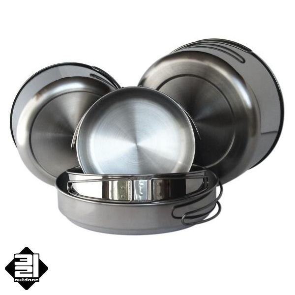 Nádobí je vyrobeno z kvalitního nerezového materiálu CrNi 18/10 - z vnější strany s povrchem leštěným, z vnitřní jemně broušeným. Nádoby jsou opatřeny lemovkou, která zvyšuje jejich pevnost. Velká a střední miska jsou patřeny prolisem, který zvyšuje stabilitu nádob na vařiči. Nádoby i poklice jsou opatřeny sklopnými držadly, které lze v případě potřeby odejmout. Součástí dodávky je síťový textilní obal.
