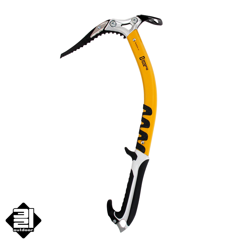 - prohnutý tvar násady umožňuje jednodušší lezení v ledových boulích nebo ve skále a zároveň zaručuje optimální úhel úchopu