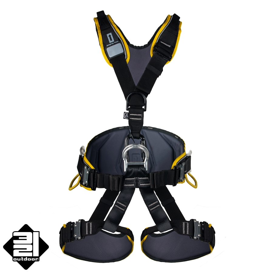 - určený pro lanový přístup, s širokým polstrovaným bederním pásem, nohavičkami a ramenními popruhy