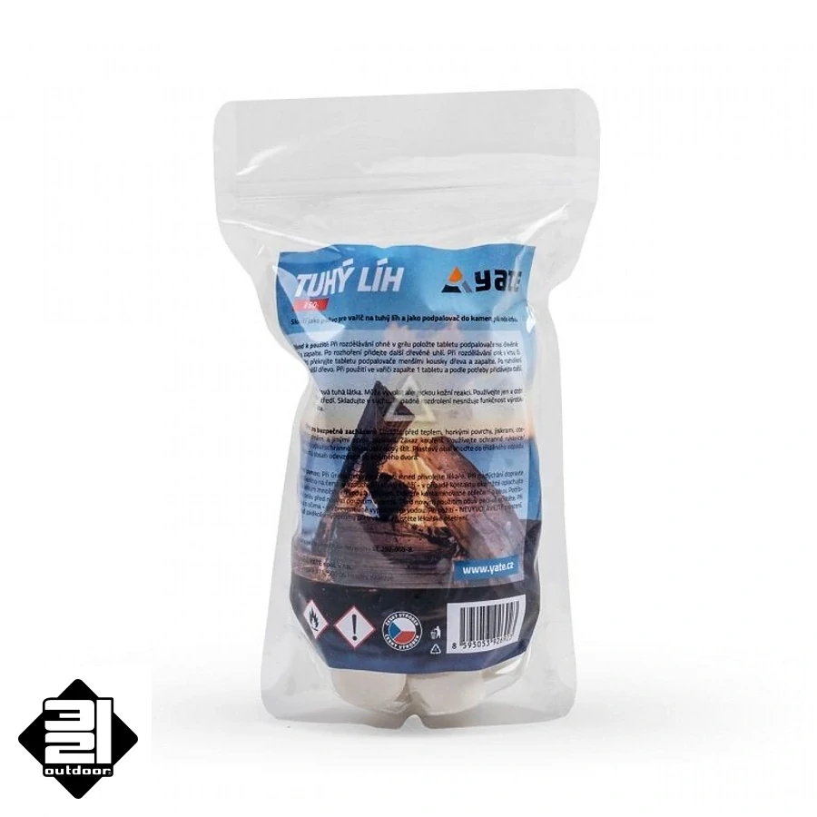 Velké balení tablet v pevnémm PE sáčku. Obal chrání tablety před vlhkem a poškozením. Tablety jsou vhodné jako palivo do vařiče na tuhý líh nebo pro roztápění kamen, ohnišť a grilů. Pro rozdělání ohně obvykle stačí 1/2 tablety.