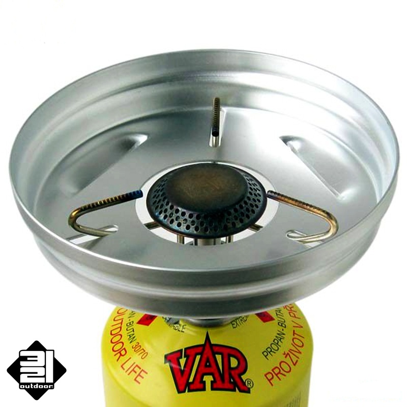 Závětří k plynovému vařiči VAR 2 je velmi lehké, snadno namontovatelné a účinné. Jedná se o promyšlený hliníkový výlisek s přesnými otvory a jednoduchou aretací. Při vaření v malé nádobě za větrného počasí sníží spotřebu plynu až o 25%. Alternativně je možné je použít jako stabilizátor plynové bomby při vaření ve velké nádobě, kde by jinak hrozilo převrhnutí vařiče.